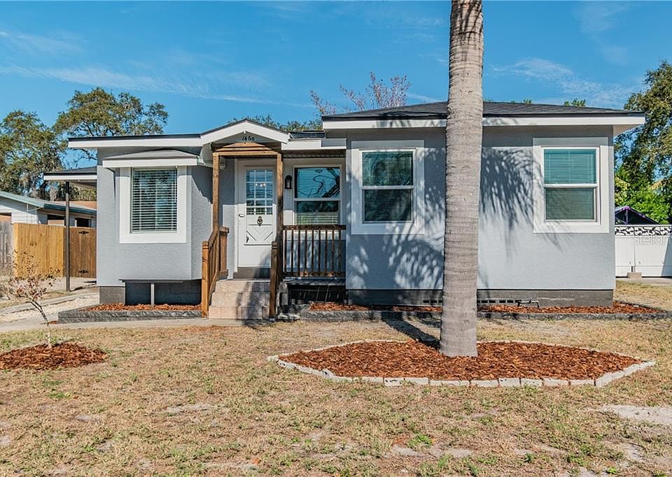 Beautifully renovated bungalow in the heart of Clearwater just minutes to the beach and everything Clearwater has to offer. This property has been fully renovated inside and out features 2 bedrooms with 2 full bathrooms, open floorplan and large kitchen with island. Some of the features on the interior include waterproof laminate floors throughout the entire home, 5 1/4" Baseboards, Ceiling Fans, Designer Lighting, and New HVAC. The kitchen features Custom Solid Wood Cabinetry w/ soft close doors and drawers; Fantasy Brown Granite countertops; Whirlpool Stainless Appliances; Island; Gas Cooking, and designer faucet. Both bathrooms feature designer tile finishes, stone counters and designer faucets and lighting. Faux Wood Window Treatments have also been installed through out the entire home!! On the exterior, the home has a Brand New Roof, Covered Parking, New Energy Efficient Windows, beautiful 8' x 28' covered back porch, huge back yard, 128 sf' fully renovated shed finished with drywall and new roof. This home is an incredible value at an incredible price point!! Will not last long!!