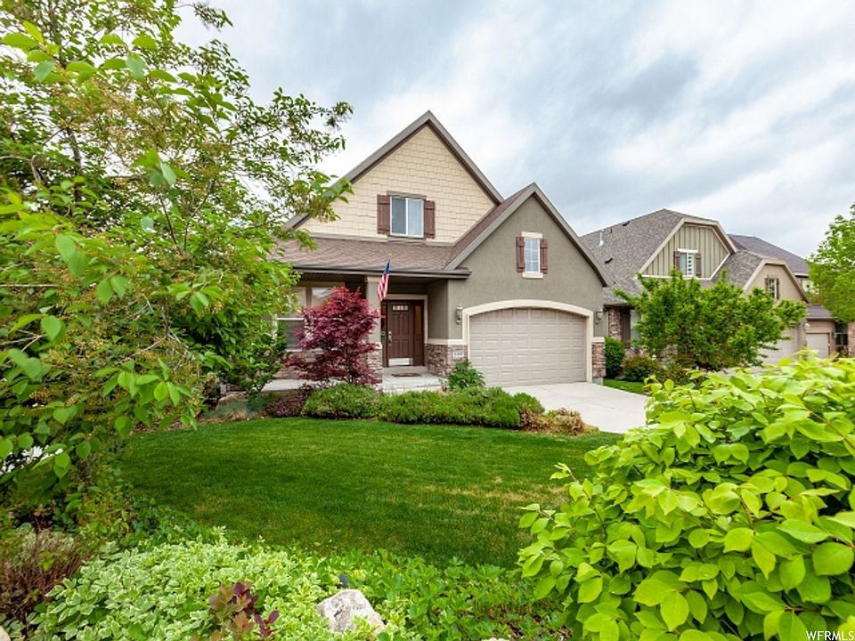 Enjoy coming home to this beautifully updated 7 bedroom 5 bathroom home located in the heart of Sandy! This wonderful home offers maple cabinets, stainless steel appliances, American cherry wood floors, butler's pantry, granite countertops; spacious bedrooms, 2-master suites: one on main level and one upstairs, additional main floor bedroom/office; wonderful great room, formal dining, neutral tones throughout, gas fireplace, big walk-in closets, 2-laundry rooms, downstairs family room/theater room, play room area, wet bar, lots of great storage and 2-car garage. Quiet community with no backyard neighbors, spectacular mountain views, big back deck with retractable awning, pergola, water feature with koi pond, fully fenced, and backs to Sego Lilly gardens. This home is also maintenance- free: all lawn care and snow removal are taken care of by the HOA. Centrally located to schools, shopping, and canyons. A must see!
