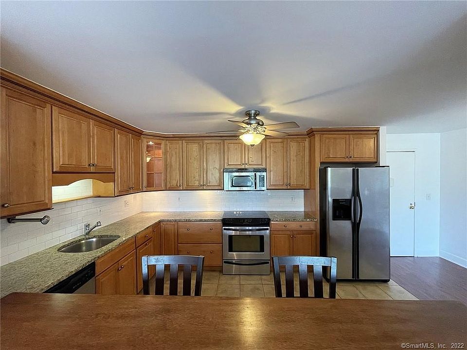 Pristine, light and bright Ranch unit at sought after Tide Harbor. This unit features freshly painted interior/ balcony with large open floor plan, pergo floors throughout. Newer kitchen, maple cabinets, stainless steel appliances, tile floors and backsplash subway tile for added flare. Large living room area that serves as entertaining and dining space. Newer thermopane windows and sliders lead out to a large open balcony for relaxing sunsets and spirits. Expansive master bedroom with a private updated full bathroom and plenty of closet space is just off the main living space accompanied by an updated 1/2 bathroom in the hallway. Good size second bedroom completes the unit with additional closets and storage throughout. Outside the unit there are laundry rooms on each floor and elevator access to lower levels for additional storage units and common room with kitchen that can be rented out for parties. Outside you will be treated to a beautiful inground swimming pool and patio for lounging. Explore the nature of the Housatonic river and walking distance to Birds eye boat launch and fishing pier. Walk or drive to Stratfords Crown Jewel, Short Beach Park with 9 hole golf course. Minutes to I-95, shopping and Restaurants. Easy to show!