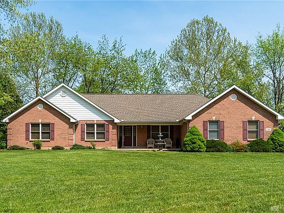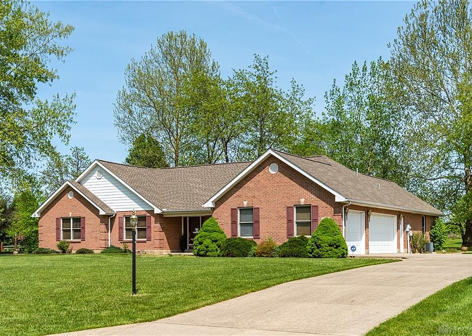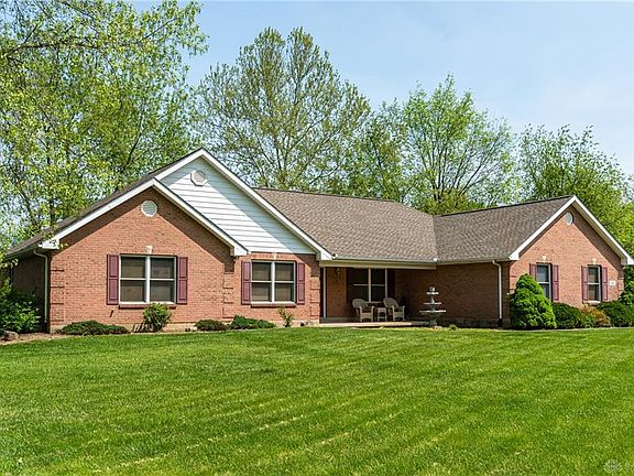 You will want to check out this 3 bedroom 2 full 1 half bath brick ranch style home with 2 car attached garage. This home is situated on 1.26 acre lot surrounded by beautiful mature trees. This home offers 2,383 sq. ft. of living space, cathedral ceilings, and an open floor plan concept of living throughout. The living room is spacious flows into separate dinning area, and kitchen. The kitchen has ample cabinet and counter space, matching appliances, and your own personal breakfast nook/bar area-perfect for entertaining!! The family room is inviting with a beautiful wood burning fireplace. The bedrooms are spacious and feature a premiere suite with walk-in-closet and personal full bath. Outside features an open yard with your own separate storage shed. This home is located within minutes of schools, parks, shopping, highway access, WPAFB, and more!!!