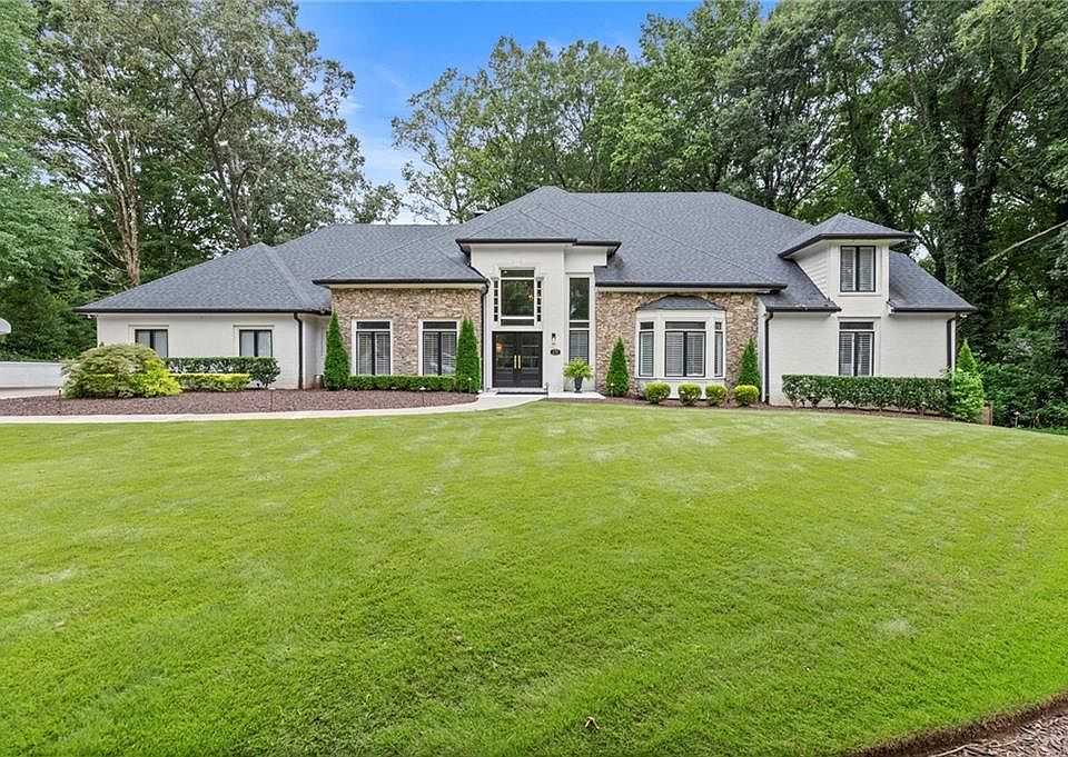 Discover this beautifully renovated custom estate, perfectly situated on one of Brookfield’s most coveted lots. Overlooking the 9th hole, the home offers sweeping year-round views of the lake and golf course, all from a quiet cul-de-sac setting. The level lot provides direct access to the cart path and is just steps away from the clubhouse—ideal for both everyday living and entertaining. Inside, refined updates and designer finishes create a seamless blend of luxury and comfort. With 5 bedrooms and 5.5 baths, the open floor plan is anchored by a dramatic two-story foyer. A formal dining room and private office with French doors frame the entrance, while the fireside living room opens directly to the covered patio, complete with fireplace, bar, TV, and heater for true indoor-outdoor living. The chef’s kitchen is the heart of the home, featuring professional-grade appliances, custom cabinetry, a butler’s pantry with wine storage, an oversized island, and a casual dining space with panoramic views of the course. A spacious garage accommodates two vehicles plus a golf cart, and connects directly to a mudroom, laundry center, and walk-in pantry for everyday convenience. The main-level primary suite is a private retreat, offering a sitting area with fireplace, tray ceilings, remote-controlled shades, spa-inspired bath, and a fully customized walk-in closet. Upstairs, two or three additional bedrooms and an oversized walk-in attic/flex space provide ample storage or the option to finish into more living space. The terrace level offers incredible versatility with a full in-law suite, complete with fireplace and bath, plus room for a recreation space, media room, office, or additional bedroom. Living in Brookfield Country Club means access to a lifestyle second to none. Membership opportunities include a championship 18-hole golf course, brand-new fitness center, updated driving range, 10 tennis courts (six hard, four clay), resort-style pool, full-service restaurant, and year-round social events. All of this in a prime Roswell location—minutes from downtown Roswell, Alpharetta, top-rated schools, and the best park system around.