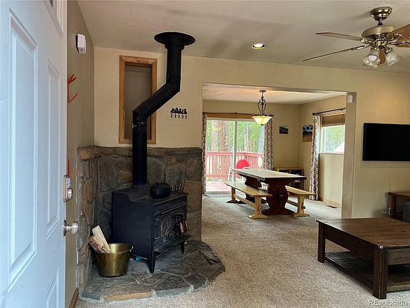 As you enter the home you'll see the living room has a cozy wood burning stove. Dining area has a large sliding door with easy access to the back deck & patio. Kitchen has newer appliances with laundry in the hallway. Several improvements including a new 3/4-bathroom, metal roof installed 2016, new windows installed 2017 & fully insulated crawl space. Large circular driveway with parking along the side of the home. This property has an old log cabin with electrical, plus there is a small shed.