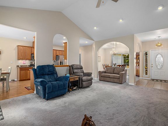 Nestled within the highly desirable NE Grants Pass neighborhood, this beautiful home offers the perfect blend of convenience & serenity. Built in 2005, this meticulously maintained residence boasts a 1,671 sqft, 3 bed, 2 bath floorplan that features a light & bright living room with vaulted ceilings, gas fireplace, dining area & a functional kitchen complete with sleek stainless-steel appliances, granite counters & an eating area with door to the back patio & large yard. Large bedrooms include a gracious primary with ensuite bath complete newly tiled shower & large walk-in closet! Additional features include a laundry room, energy efficient gas heating & air plus a 2-car garage that includes a workbench & shelving. Outside you'll find mature landscaping with drip irrigation, in-ground sprinklers & a lovely front patio overlooking the city. You can have all this on a large .20 acre lot conveniently located on a cul-de-sac street, just minutes to shopping, parks & District 7 schools!
