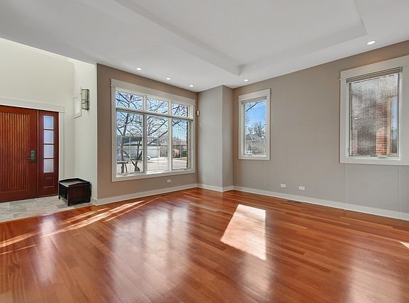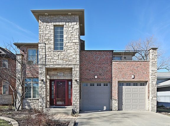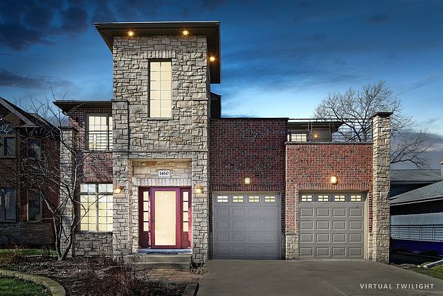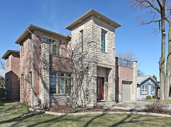 Stunning all brick & stone custom contemporary home with open floor plan located on a large, professionally landscaped lot & quiet street. Built only 10 years ago, a solid wood front door greets you to a grand 2-story foyer. HW floors throughout the 1st floor. Oversized windows w/custom treatments, recessed lighting, surround sound system, solid core doors, closet organizers, throughout. A modern gourmet kitchen features cherry cabs, granite counters, Jenn-Air appliances, under cabinet lighting, prep sink, wine fridge. 2-story formal dining. Eating area overlooks a cozy family room fireplace, patio, pergola & picturesque fenced backyard. Watch sunsets from a private master suite which includes balcony, sitting area, illuminated tray ceiling, walk-in closet, marble bath w/jacuzzi tub, gigantic separate shower w/body sprays. Large bedrooms w/marble baths & balconies. 2 sep HVAC/AC systems, fire sprinkler sys. Gigantic basement w/10' ceiling, brick FP & rough-in plumb. Walk to schools!