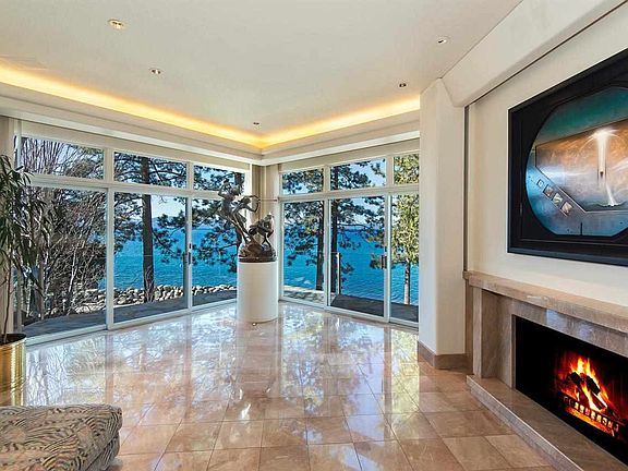 This stunning contemporary 4,300 square foot lakefront home has unsurpassed views of Lake Tahoe, 50'' of waterfront and a private buoy. Featuring beautiful lines, high quality construction and unique architecture throughout. Designed with a striking combination of granite, marble, slate, copper and glass, accented by an outstanding blend of red and blonde aspen wood. The main floor has expansive walls of windows bringing the dynamic views of Lake Tahoe and the Sierras inside.