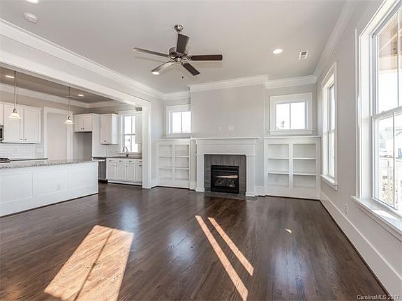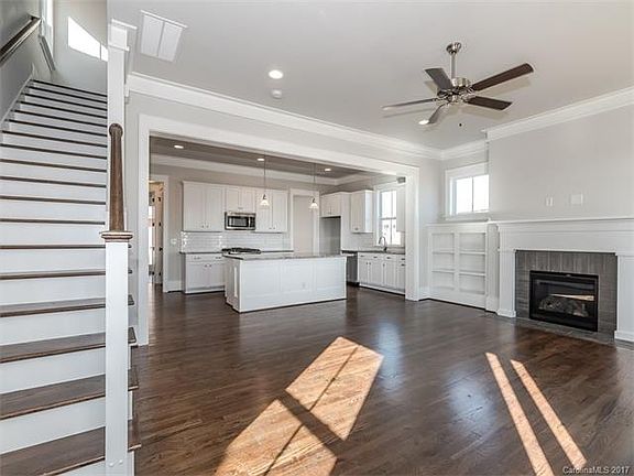 Charming porch-over-porch Creighton plan. Open concept kitchen & living space. Upgrades include built-ins @ fireplace, double barn doors @ entrance to pantry, drop zone in laundry & over-sized 2-car detached garage.