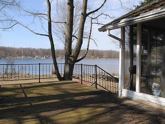 This is a rare find at an affordable price for a cottage on a large lake lot with over 100 feet of lake frontage. Looking for a quiet summer get away? This fills the bill on beautiful Fish Lake. Two large decks and a screened in front porch overlooking the peaceful lake. Two large decks and one deck has moveable benches. Fishing lake means relaxing and quiet days ahead! Some wire fencing on the side lot lines. Living room is 17X16 and has a decorative beam and ceiling fan. Kitchen cabinets are wood and has two large pantries. Kitchen has an eating bar at the wrought iron railing overlooking down into the living room. Perfect for the fisherman. 11 X 21 old boat house down near the lake needs work and a roof. If buyer wants the boat house removed, seller is willing to have boat house taken down and removed from foundation. Waves of clear water lap at the shore line waiting for you to toss in your fishing line or dip you toes. LP stove and heater has not been used for years and sold as is. Home has natural gas available but not run into the home. Sewer bills running $63. Lake Association dues are only $10.