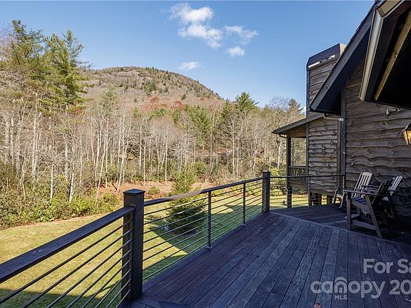 This legacy property is everything anyone could want in a mountain home. Minutes from downtown Highlands, 5.88 fenced acres, private, a babbling creek, spring fed pond and view of Shortoff Mountain. Contemporary masterpiece with a thought out open floor plan featuring main level living space. A 'nano' collapsing glass wall from the dining area to the screened porch with wood burning fireplace. Shortoff Mountain is framed in view from the great room with its soaring fireplace. Primary bedroom with wood paneled ceilings is large yet cozy. En suite bath with shower, freestanding tub and plenty of storage. Upstairs is a split by a loft with bedrooms and baths on each side. There's 'secret' storage behind the bookshelves that little elves will love to explore. A finished bonus room above the garage with a full bath for additional living space. Generous laundry room, mud room, whole house generator, 4 separate HVAC units, 2 Rinnai instant hot water heaters and an incapsulated crawl space.