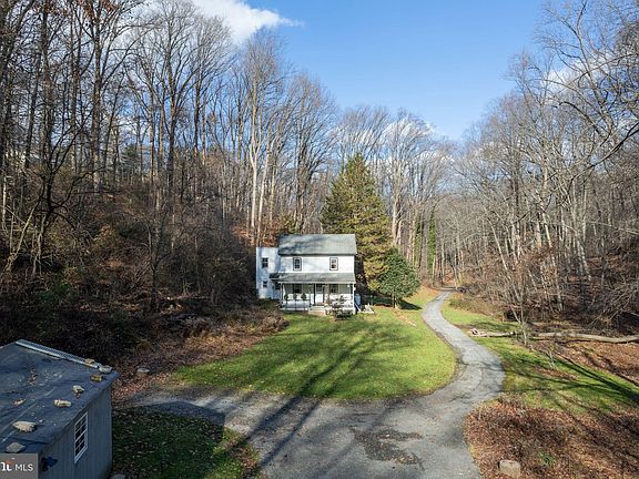 Welcome to 1460 Spackman Lane, a historic 4-bedroom farmhouse dating back to 1820 on 9.6 secluded acres. Nestled along a long, private driveway, the home sits amidst a grassy lawn, bordered by a stream and wooded hills. Inside, the living room with hardwood floors and a wood-burning stove leads to the updated kitchen and dining room, featuring slate tile with radiant heat, custom hardwood cabinets, quartz countertop, and modern appliances. A half bathroom and laundry room with stacked Samsung washer and dryer are conveniently located off the kitchen. The second floor hosts 4 bedrooms with ample closet space and two full bathrooms. The primary bedroom has its own bathroom, and a staircase from one of the bedrooms leads to the finished attic, offering additional living space. Accessible from the living room staircase or the side of the house, the basement houses the furnace and hot water heater. With full height, the basement is suitable for storage. This farmhouse, which is being sold as-Is, combines historic charm with modern amenities. Discover the potential of this property, where history meets functionality. Schedule a visit to 1460 Spackman Lane to explore the unique blend of character and convenience this West Chester home has to offer. Subdivision is possible, but with constraints related to flood plain and slope. Buyer is responsible for all due-diligence related to subdivision possibilities.