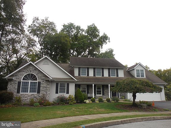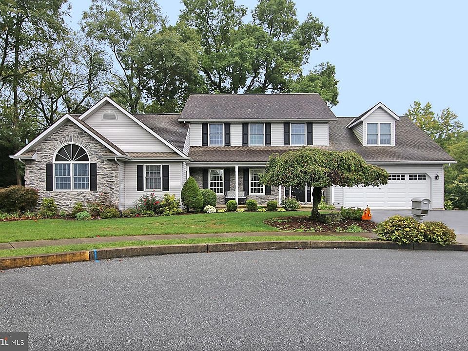 Beautifully maintained home in a cul-de-sac.Home is much larger than it appears, with over 3,000 sq. ft. ,plus lower level family room with additional living space.Sellers are moving into a retirement community and downsizing.Heated floors in kitchen and foyer and half bath.Kitchen features commercial gas stove , all appliances stay, except microwave.Many rooms have beautiful hardwood. Has other private entrances that could be used for in-law quarters, or home business.Five bedrooms with 4.5 baths. Two bedrooms have their own private baths and walk-in closets. Home features many built-in cabinetry, book shelves and closet space.Attic storage access in front bedroom with pull-down stairs. First floor laundry room which includes washer(brand new)/dryer and a safe, which stays.Formal dining room has pocket doors leading to the library/office.Corner gas fireplace in living room. Unique property that has woods in rear, large side yard, and access to creek.Two decks to watch the wildlife from, one off the kitchen and the other off the library/office on first floor.Lower level has large family room with bath, wet bar and built-in cabinets for entertaining and beautiful custom shelving by Dutch Wood . The TV& refrigerator in lower level and the shuffle board table stay.Large storage room in basement has metal shelving that stays.Ring doorbell & Garden shed stays.Two car garage has newer garage door.New front door and newer shutters/ freshly painted shutters. HVAC system(Trane) in original part of home replaced 8/22.Many updates over the years. Home and addition was built by S.Gerald Musser. The home/ structures are not in the flood plain and do not require flood insurance. Map under " documents".