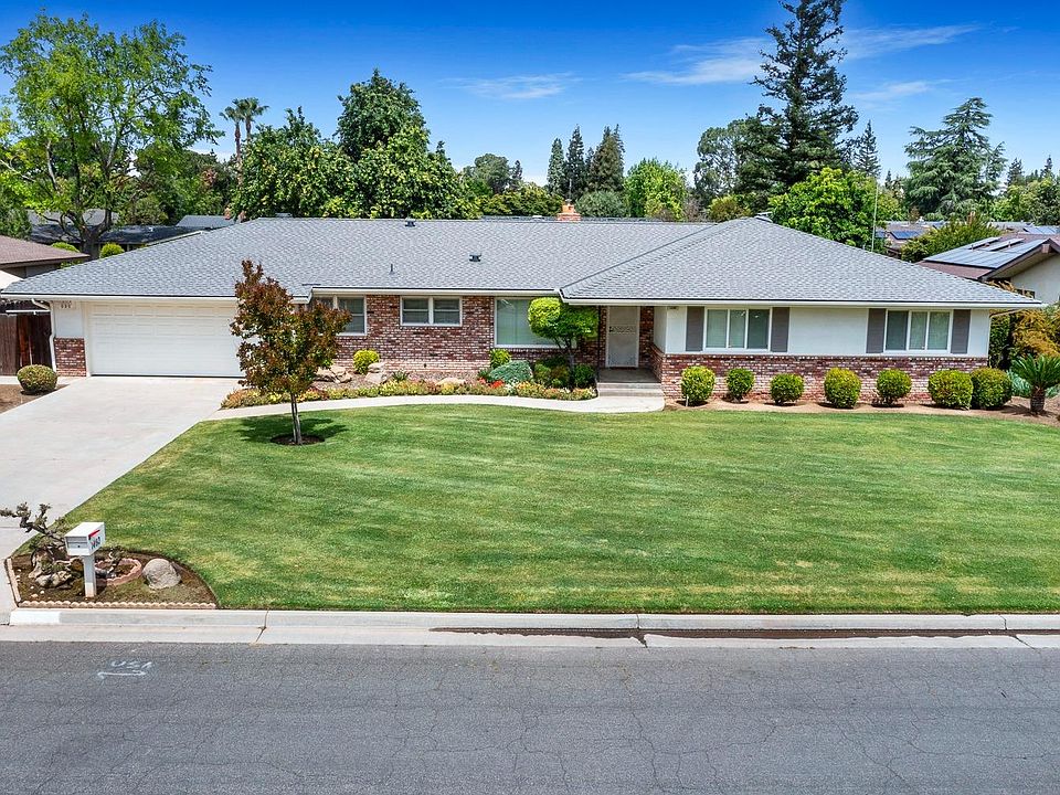 This original-owner 3 bedroom 2 1/2 bath classic Grove-built home sits back on a quiet cul-de-sac lot in the heart of Northwest Fresno. Entertain gatherings, or simply unwind in the huge great room where expansive windows showcase the beauty of your backyard. Through the sliding glass door you'll find a covered patio, sprawling lawn, serene Japanese garden, the sweet fragrance of citrus trees, shed, and ample space to grow your own fruits and vegetables and create a dog run. The formal dining room and updated kitchen with its sunny dinette overlooks the equally impressive front yard, and is adjacent to a very spacious laundry room with pantry, utility sink, and convenient half bath. The bedroom wing includes three generously-sized bedrooms (counting the primary suite), full hall bath, and two linen closets. Many improvements over the years include custom shutters throughout, custom crown moldings, dual pane windows, and a presidential comp roof. There's an oversized two car garage with plenty of storage cabinets plus a workshop area. Convenience meets tranquility Easy access to schools, shopping and restaurants all within a mile will make errands a breeze. This meticulously maintained home reflects pride of ownership, offering great potential for the next chapter. Priced to sell - Don't miss this opportunity!