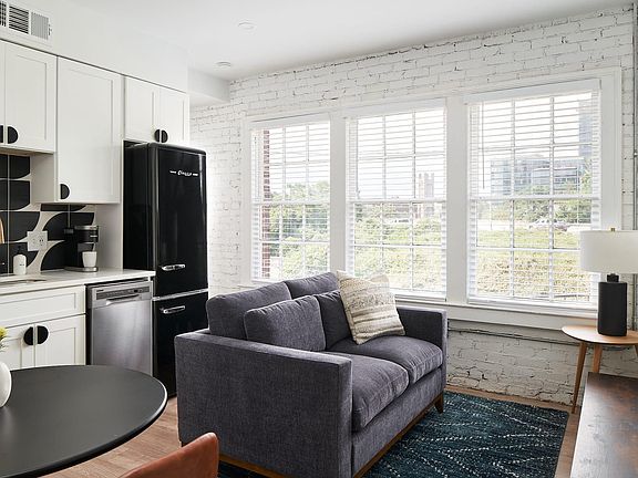 Stay awhile and feel at home in our semi-furnished studio apartment, Studio Revival Atlanta, located in the heart of Midtown on the charming Peachtree Street. This historic property offers easy access to the High Museum of Art, the Atlanta Botanical Garden, Georgia Tech, and Tech Square. The apartment features a queen-size bed in the living area and offers a tech-enabled experience with self check-in at 4pm and a Virtual Front Desk accessible via mobile device. The apartment includes a full kitchen equipped with a stove, refrigerator, microwave, coffeemaker, dishwasher, dishes, and cookware. Enjoy ultra high-speed Wi-Fi, a smart TV, and an in-unit washer/dryer. The living space ranges from 370 to 530 square feet, depending on the room category of choice. Parking spots are limited and offered for a fee on a first-come, first-served basis. The apartment welcomes one dog or one cat per unit, with a pet fee based on the length of your stay: $20 per night for 1-6 nights, $16 per night for 7-28 nights, or $8 per night for 29+ nights. Daily housekeeping services are available upon request at an additional cost per cleaning. Midtown is a vibrant destination for both residents and visitors, offering a mix of art, shops, dining, and proximity to universities like Georgia Tech and SCAD. Known as Atlanta's "Heart of the Arts," the district boasts numerous art galleries, museums, theaters, and historic buildings. Nearby attractions include the Center for Puppetry Arts, High Museum of Art, and Atlantic Station. The area is easily navigable by walking, biking, or using the city's efficient public transportation, with the Arts District MARTA Station and AMTRAK's Atlanta Peachtree Station just a short walk away. Guests are required to complete a Pre-Arrival Checklist, including a virtual ID check. The apartment is semi-furnished, including furniture but no consumable products such as linens, towels, or paper products. The property does not offer luggage storage. The photos provided are of show units, and decor and layout may vary slightly. Our Guest Experience Team is available 24/7 for any assistance. The apartment is equipped with ultra high-speed Wi-Fi, making it remote work-friendly.