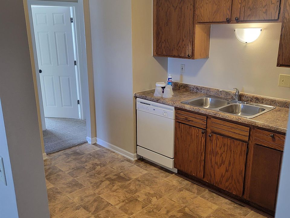 PLEASE READ LEASE TERMS BEFORE INQUIRING Secure 4 plex building. Lower level unit with sliding glass doors out to patio. Freshly painted with all new carpet and window blinds. Furnace, Air Conditioning (wall unit) and dishwasher. Coin operated Laundry on site. Single Car Garage plus off street parking spot. Tenant Pays: Gas, Electric, Internet, Cable Landlord Pays: Water, Sewer, Trash, Lawn and Snow maintenance