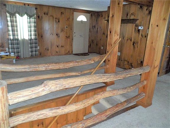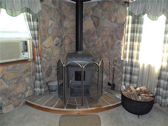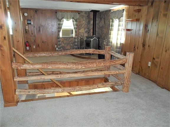 Looking for a rustic home in the country? Check this one out! Log accents, a wood-burning stove, and a unique lower level kitchen make you feel like you're camping! Bring your rocker and relax on the covered balcony that overlooks the woods and partially fenced yard. There is a great view. Features 3 bedrooms, a large living room, an eat-in-kitchen with island, mudroom, workshop, pantry, den, much more! There is plenty of storage. Outside there is a large 2-car detached garage and 2 sheds.