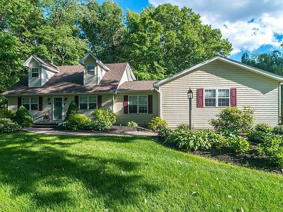 Pleasant Valley School District!!! Great location! Beautifully well maintained Cape Cod w/ many upgrades. HW floors throughout. Cherry Cabinets in Kitchen w/ granite counter tops & breakfast area. Tiled floors. Master bedroom Suite on 1st floor w/ walk in closet. Private Master bath w/ soaking tub & skylight. Living room/Dining Combo w/ sliders to back deck. Upstairs you will find 2 large bedrooms with their own bath to share & both have hardwood floors & one has a delightful window seat. This home also offers a family room in the LL, w/ built in cabinetry, refrigerator, tile floors, & separate office/den. It's got it all! Outside you will fall in love with the setting. Large deck w/ hot tub, brick paver patio & sidewalks. A Zen garden. You have to see it to appreciate it!