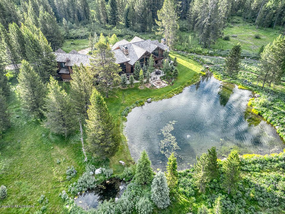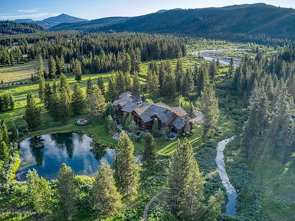 Nestled along Pacific Creek surrounded by the pristine wilderness of Grand Teton National Park and the National Forest sits Cutthroat Bend, a one-of-a-kind property merging the serenity of nature, impressive design, and alluring privacy. The elegant custom-built home features generous rooms with picture windows, letting in the beautiful, panoramic Teton views and natural light. Highlights of the home include a two-story great room with floor-to-ceiling windows and a two-sided grand stacked stone fireplace, a spectacular chef's kitchen with Thermador range, custom log & stone work, intricate woodwork, tumbled marble bathrooms, and custom-crafted fixtures and metal work. An expansive outdoor entertaining area and decks, surrounded by colorful flower beds, takes full advantage of the mountain views and large pond. The barn, on a separate parcel, contains a guest house upstairs with stunning creek views. Within close proximity are hiking & horse trails, world class fly fishing, Jackson Lake, Yellowstone and much more. Eagles, bears, moose, elk, sand hill cranes, and cutthroat trout complete this exclusive retreat fit for true outdoor enthusiasts.