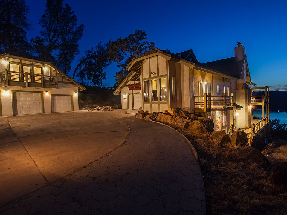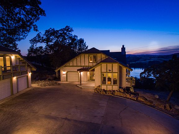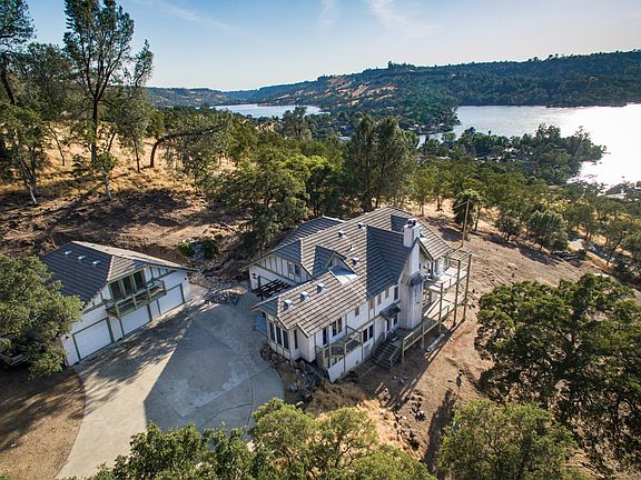 Here's your chance to own your own piece of paradise with gorgeous water views from almost every room and your own private beach and marina. This 3-story stunner has wraparound porches on every level to enjoy the beyond-fabulous views and is located on approximately 4.35 acres in the gated community of Black Jack Bluff Estates, on the south shore of Lake Tulloch. The gourmet kitchen features granite countertops, gourmet gas cooktop, Subzero fridge and stainless appliances. large open living room with fireplace. Main level has enclosed deck, and seperate covered patio. Lower level has a family room with fireplace, one bedroom and bath and a huge storage room. Master on main level. Seperate 3 room over garage. This is a "must-see".....TOTALLY FABULOUS!!!