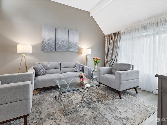 Gorgeous, well maintained ONE story condo situated against a backdrop of evergreens, in the heart of Renton! Garden & patio area at entry create welcoming appeal & space all your own. Features throughout: plenty of natural light, updated laminate flooring, white craftsman trim, & fresh interior paint. Living room offers large windows & vaulted ceiling for open concept feel. Well-appointed kitchen includes crisp white cabinets, stylish light fixture, SS appl, & generous sized space for dining area. Utility closet off the kitchen houses ample space for a stackable W/D set. Primary suite has separate bath entrance & W-I-C. Full bath feat. dual sink vanity, tile floors, tile shower surround & tub! Assigned parking for 3 vehicles. No rental cap.