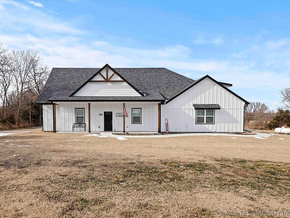 Home built in 2022 with 20 acres - what more could you ask for? You must see this beautiful open concept, vaulted ceiling, 4 bedroom, 2 bathroom home. The kitchen has so much for you to see: 9 foot island, pot filler, farm sink, quartz counters, double ovens, 5 burner gas oven and a walk in pantry. There is a safe room located inside one bedroom, this bedroom could be used as an office if you'd prefer. The home has laminate flooring, foam insulated walls, built-in shelving, LED lighting, tankless water heater, large indoor laundry room with sink and a storage folding table. The large master bathroom features a bench seat, 2 sinks, an oversized shower and a separate tub. Outside you will find a patio, a storage shed, a fenced in backyard and the roof has impact resistant shingles.