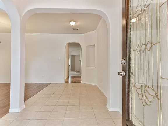 Spacious single story home on over-sized corner lot. Elegant entryway! Formal living and dining with "wood" tile floors. Formal living could be an office. Arches lead you to the main living areas. LARGE kitchen with 42'' cabinets, silestone counters and eat in breakfast area. Kitchen is open to the family room. High ceilings throughout. Family room with high ceilings and gas log fireplace. Primary bedroom w/2 closets. Study area off primary could be perfect nursery! Covered back patio! Walk behind the house and you're at the lake and trails! Very elegant and ready for immediate move in.