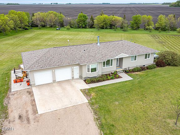 2003 built large ranch style home on 5 acres less than 10 minutes outside of East Grand Forks! Over 3300 square feet, amazing floor plan, main floor laundry, main floor master bedroom suite, steel siding, 2 stall garage, and more! Enjoy paved highway driving for the majority of the drive to town and less than a quarter-mile of gravel.