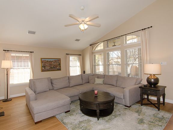 "In-Ground Pool and Spa, Study Areas, Covered Front and Rear Patio, Formal Dining" This contemporary design is ideal for the modern, work-at-home family, with four bedrooms plus a study with glass paneled French Doors and a study nook outside the secondary bedrooms. Additionally, the front bedroom has French Doors and can be used as a third study area when both partners and family are at home. A formal dining room has two large mirrors placed within decorative art niches (the mirrors convey). The central, island kitchen is ideally open to the family room and breakfast area and has Corian counters, raised panel, maple cabinetry, a butler's pantry, walk-in pantry, tile backsplash and built-in microwave (the refrigerator conveys). The family room has high, vaulted ceilings, and beautiful windows that provide a great view of the covered rear patio and rear yard (the flat screen television conveys). The very large primary bedroom has cathedral ceilings and windows that architecturally match the family room. The primary bath has raised, dual vanities, a glass block window, jetted garden tub and a separate shower. The backyard is shaded and has an inground pool and raised spa. This home sits on a larger than average yard, with mature trees. Additional Features Include: Large Laundry room, two walk-in linen/storage closets, a large attic for extra storage, converted garage with independent HVAC system, full sprinkler, the roof was replaced in 2009. Two Ring security cameras with floodlights provide additional security and pool safety. There is also a Ring Door bell and two smoke detector / CO listeners and a keyless door lock. The washer and dryer and two work benches, also convey.