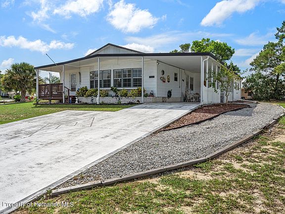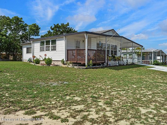 Welcome to your future home in the vibrant 55+ gated community of Brookridge! This charming 2-bedroom, 2-bathroom residence offers a host of appealing features. Enjoy a light and airy ambiance throughout the home. The well-appointed kitchen with tasteful stone backsplash and wood cabinets. Crown molding adds a sophisticated finish to the living spaces. The spacious family room is illuminated by inviting bay windows, creating a warm and welcoming atmosphere. Transition seamlessly from indoors to outdoors through two sliding doors that lead to a delightful Florida room. Your master bedroom provides ample space for a king-size bed, ensuring comfort and relaxation. The master bathroom features a stylish walk-in tiled shower. For moments of relaxation, the guest bathroom offers a jetted tub. A golf cart garage/utility room with a utility sink provides convenience for various tasks. Additional parking space on the property ensures that your guests are always accommodated. Say goodbye to the hassle of carpet maintenance; this home features no carpeting. As a resident of Brookridge, you'll have access to a wealth of amenities, including a golf course, tennis courts, pickleball courts, heated pool, and a variety of activities tailored to your lifestyle. Conveniently located near hospitals, beaches, and parks, you'll have easy access to all the essentials and recreational options. Don't miss the opportunity to explore the famous Weeki Wachee mermaid park, a local treasure. One of the standout features of this property is that you own the land, offering a sense of permanence and financial security. This home is more than just a house; it's an opportunity to embrace an active and fulfilling retirement lifestyle in a thriving community.