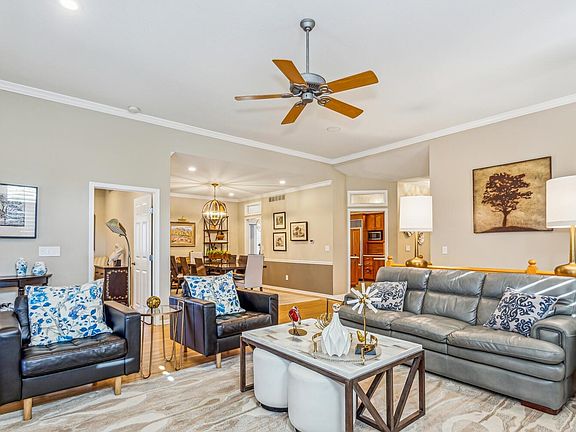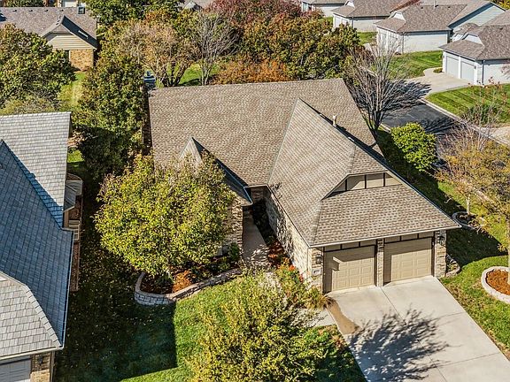 St. Ives, a wonderful patio home neighborhood on the edge of Crestview Country Club, is awaiting a new homeowner and is move-in ready! This 4 bedroom home boasts wonderful amenities and is located on a corner lot. The main floor is highlighted by expansive wood flooring that opens to the large living room with an eye captivating fireplace, high ceilings with crown molding & wonderful windows with plantation shutters. The incredible bright dining room boasts enough space for a large gathering of friends! The remodeled kitchen with multitudes of cabinets, quartz counters, island with gas range, prep sink, built-in Sub-Zero refrigerator, double oven & eating space make this space the envy of any cook. A nearby laundry room & a huge walk-in pantry are conveniently located. The relaxing master suite has a spacious bedroom with plantation shutters and a private bath with 2 vanities, whirlpool tub, walk-in tile shower and a walk-in closet with built-ins. An additional bedroom with a vaulted ceiling and a hall full bath with a tile shower complete the main level. The fantastic finished basement has a rec room with a stone fireplace & wet bar with a full size refrigerator, 2 bedrooms (both with walk-in closets-one is a cedar closet), workshop/storage that is plumbed for an air compressor, full bath, and another large storage area. Backing to a park-like setting, outdoor living is a delight with a pergola covered deck with grill that is plumbed with gas and many trees. Low maintenance!! Don't miss out on this opportunity! New AC 2024. Exterior painting every 6 years is the only exterior maintenance the HOA covers. Home last painted in 2023. Snow removal after 4". Irrigation well on HOA property for sprinkler system. HOA dues also include mowing, trash & fertilizing.