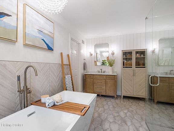 Welcome to 14605 Golden Leaf Place, a completely remodeled home located on a quiet cul de sac in the Lake Forest community. This home offers classic finishes with a modern twist throughout every level. Beautiful European white oak floors stretch through both the first and second levels while luxury vinyl plank flooring finish out the basement. Walking through the double door entry you will see a sophisticated sitting room finished with a herringbone accent wall, a dining room adorned with shiplap ceilings, and entry to the open concept living room and kitchen areas. The kitchen area boasts an island with plenty of prep area and seating for four. The Amish built cabinets and marble backsplash provide a wonderful backdrop for all of your dinner parties. The area is complete with a eat-in space looking out to the backyard. Moving upstairs you will find all of the home's bedrooms, three full bathrooms, and laundry room. Each room has it's own unique character. The primary bedroom provides a sitting area to nap or relax and the primary bathroom gives off calming vibes and is equipped with a large walk-in shower, free-standing soaking tub and two separate vanities. The other remaining bathrooms have been updated with floor to ceiling tile and marble-topped vanities. You don't want to miss the laundry room that has been completely been transformed and provides space for all of your laundry needs. Downstairs in the basement you can enjoy the open space to relax with friends and family and dry bar area to prep food and watch the big game or have a movie night. While the weather is nice head outside on the deck or hang around the fire pit in the backyard. This home is complete with a spacious 3-car garage and 2 storage spaces (basement and above garage). New roof to be installed May 22nd-26th. Come see everything this home has to offer! Homeowner is a licensed Kentucky Real Estate agent.