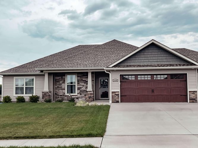 The open concept floor plan features a covered porch, an oversized 2-car garage, granite counter tops, hidden walk-in pantry, covered rear patio, and full stainless steel appliance package with matching French door refrigerator. This home is within walking distance to Hallsville Schools and has access to high-speed fiber internetMain Picture is similar floorplan