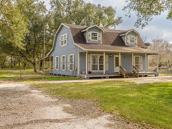 This charming 3-bedroom, 2-bath farmhouse sits on nearly a full acre, offering endless possibilities for a hobby farm, homestead, garden, or even a few animals. The property is fully fenced and features well and septic, giving you the freedom and flexibility of rural living. Enjoy peaceful mornings and evenings on the covered front and back porches overlooking this beautiful piece of Texas land. Inside, you’ll find a spacious country kitchen with warm wood cabinetry, a wall of pantry storage, center island, and stainless steel appliances. Solid surface flooring flows throughout the house, complemented by a large living and dining space ideal for gatherings. A utility room is conveniently located downstairs. Upstairs offers two oversized bedrooms and a full bath, providing plenty of room and comfort. This property combines charm, functionality, and land—perfect for those seeking space, privacy, and a true country lifestyle. Santa Fe ISD and NO HOA!