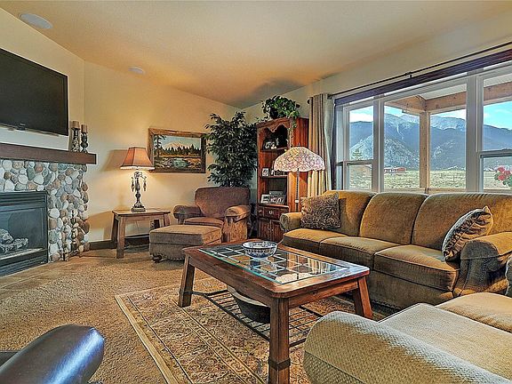 This captivating quality home is immaculately finished providing an open concept for easy entertaining. The kitchen boasts an abundance of counter space with island, tile back splash, and excellent lighting opening to the dining room and living room with a stone fireplace. Expansive mountain views are framed by the large windows plus glass doors in the dining room lead out to the beautifully landscaped and fenced backyard. Master suite has a large window, plenty of storage, coffered ceiling and master bath with artistic finishes. There are also two additional bedrooms plus a full bath. Low maintenance exterior is stucco and stone with a welcoming front porch. 2 car detached 22`X26` metal garage with two-9`X 8` rollup doors, 2-24"X 36" windows and 1 walk-in door". Minutes to the hot springs for a spa treatment for soaking, hiking in National Forest or one of the 7 Fourteeners nearby and close enough for a quick trip to historic downtown Buena Vista. This is a high-quality modular home.