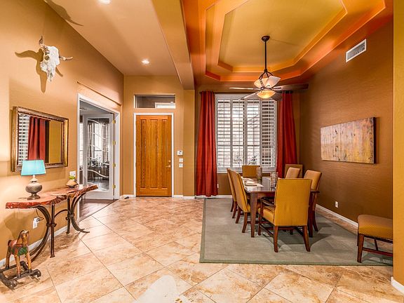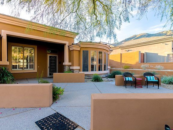 This stunning, Pulte-built, 5BR, 3-bath, executive cul-de-sac home is nestled in the secluded, gated Montana Vista community on the South Mountain Preserve. It has everything that today's luxury-home buyer demands, and frankly, it will take your breath away. It's a 3,322 sq. ft. single-story, split-floor plan, open-concept entertainer's dream, anchored by a spectacular new chef's kitchen with Shaker style cabinets, and a custom media-wall with gas fireplace. 10 and 12-foot ceilings throughout emphasize upscale details such as the dining room's coffered ceiling. The resort-style setting is completed by a heated saltwater pool and spa, outdoor kitchen, electric sun shades, all with breathtaking sunsets and mountain views, directly on the 16,000-acre South Mountain Park and Preserve, which offers 51 miles of trails for hiking, biking and horseback riding. There are only two single-story neighboring homes. The home has been recently painted, inside and out, by owners with an interior designer's eye with a soothing yet dramatic Southwestern palette. The massive master suite includes outdoor access, a dream master bath, with a huge walk-in shower, jetted tub, private WC, and large walk-in closet with custom cabinetry. In a separate wing there are three more spacious bedrooms, served by a full bath. There's a fourth bedroom, now used as a den, at the front of the home, with a nearby 3/4 bath. You decide how to purpose the glass-door-enclosed formal living-room off the foyer: a gracious home office, a media room, a teenager hangout? Your decision awaits. Low-maintenance desert landscaping, a three-car garage and a large front patio complete the picture of privacy, elegance, and gracious living.