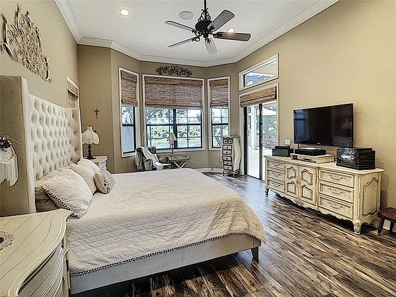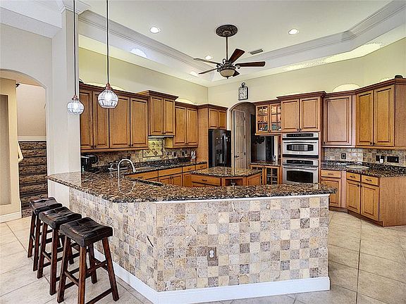 Welcome Home. This Grand Monarch V model aims to impress with 5 BD & 4 Full Bath with impressive 12 FOOT CEILINGS. This 4082 sq ft beauty boasts NO CARPET THRUOUT, Stacked windows for additional lighting, 2 Ensuites (1st floor), 2 offices, Great rm, bonus rm, formal living rm & sep dining rm. NEW EnSuite added 2020, included NEW Bathroom with quartz countertop and disabled access shower. Perfect set up for the in-laws. You will fall in love with this huge lanai and custom 16,000 gallon 36x18 SALT water HEATED POOL with SPA, water cannons, and a new automated system app to run it all. New Pool Heater 2019. Custom outside kitchen with gas grill and seated bar overlooking a tranquil water view & private preserve. This very well appointed home and lanai were built for entertaining. Chefs kitchen w/ stainless steel GE Pro appliances, built in wall oven, dry bar, solid wood cabinets, gas cooktop, granite, lg pantry and ample counter space to work. At the end of a long day retreat to your beautifully appointed owners suite. Master bath has gorgeous granite dual counters, Jacuzzi tub and walk in shower with a view of the private courtyard and fountain. Oversized 3 CAR GARAGE was enlarged at time of building, measures 32x23 (bring your big truck), 220 line for generator (generator not included). LOW HOA fees of $105 annually. 2018 Entire house interior & exterior painted. Additional upgrades include every room is wired for ceiling speakers, in wall central vacuum system, Water softener entire house, crown molding, trey ceilings, 2nd story bonus room with screened in balcony, & A/C has hypo allergenic system added. The sought after Greenbrook preserve located in the heart of LWR with great amenities such as a park, playground and trails. Close to top rated schools, McNeal Elementary & Nolan Middle. Also close to gorgeous beaches, restaurants, shopping, and entertainment. Come & Preview today..