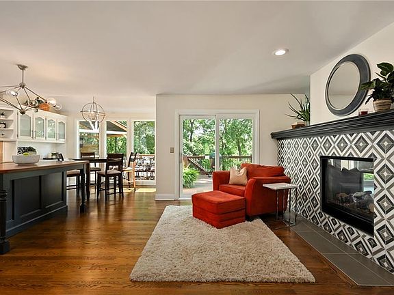 Discover Tranquility in Lakeview Estates! This beautiful two-story home, nestled on a quiet cul-de-sac, offers over 3,500 square feet of living space, including 4 bedrooms and 3.2 bathrooms. Step inside to find select grade oak flooring leading you into the great room, where a custom tiled fireplace and a wall of high-efficiency low-E Pella windows showcase the lush, wooded backyard. The scenic vistas continue in the kitchen and hearth room, featuring an island with seating and a cozy breakfast nook. A formal dining room provides additional space for hosting gatherings. The primary suite is generously sized, with treetop views, a double vanity, a huge shower, a soaker tub, a heated towel warmer, a skylight, and a walk-in closet. Hardwood flooring continues to parts of the upstairs, adding a touch of warmth to the second floor. Three additional bedrooms and 2.2 bathrooms ensure plenty of room for family and guests. The finished walk-out basement is a true highlight, boasting a second living area, a half bathroom, and a pool table that stays – ideal for recreation and fun. Enjoy the expansive deck with a large covered section, a lower-level patio, and a fire pit area, The backyard is a gardener's delight with established perennials and requires minimal maintenance. Additional features include a water softener, newer driveway (2022), garage doors and openers, and a water heater just 4 years young. Residents of Lakeview Estates enjoy private amenities including lake access, a covered fishing dock, a swim beach, 2 adult and 1 baby pool, sports courts, and a playground. Embrace the tranquil lifestyle of Lakeview Estates, where every day feels like a retreat. Don't miss this incredible opportunity – schedule your tour today and discover your new haven.