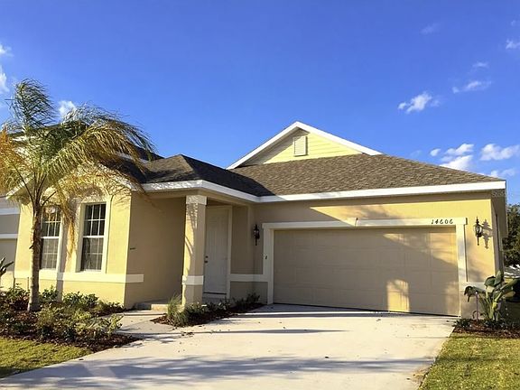 With an open main living area and a split-bedroom floorplan, this home offers the perfect blend of space for privacy and quality time with loved ones. The chef's kitchen is a culinary masterpiece, featuring granite countertops with an island, pantry closet, and appliances including a dishwasher, refrigerator, range, and range hood microwave. The triple sliding door from the family room leads to the covered, screened lanai and spacious fenced backyard, perfect for outdoor entertainment. The office/den and three bedrooms, including a giant primary suite boasting tray ceilings and a sizable walk-in closet, offer ample space for relaxation and rejuvenation. The community offers resort-style amenities including a clubhouse, fitness center, pool, volleyball/basketball/tennis courts, and multiple playgrounds.