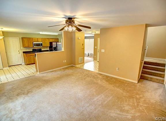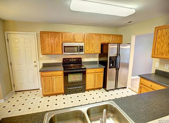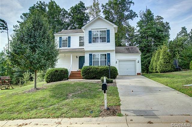 Fantastic value with this two story 3 bed 2 bath colonial boasting maintenance free vinyl siding. MIDLOTHIAN HIGH DISTRICT and centrally located to it all!! This open floor plan flows as soon as you walk in the front door with its open and inviting foyer. Spacious eat in kitchen w pantry, vinyl flooring, lots of cabinet and countertop space, and all appliances that convey with home. Kitchen overlooks large family room w wall to wall carpeting, ceiling fan, and access to massive rear Trex deck. Dining room and half bath rounds out the first floor. Second floor master bedroom features new upgraded laminate flooring, walk in closet, and its own private bath. Two other spacious secondary bedrooms w adequate closet space. Second floor utility, pull down attic for storage, large private rear yard, cul de sac lot, paved drive, garage can easily be converted back (currently used as storage room), full front porch, all appliances convey, and a one year home buyers warranty. Wonderfully maintained home that is move in ready!!!