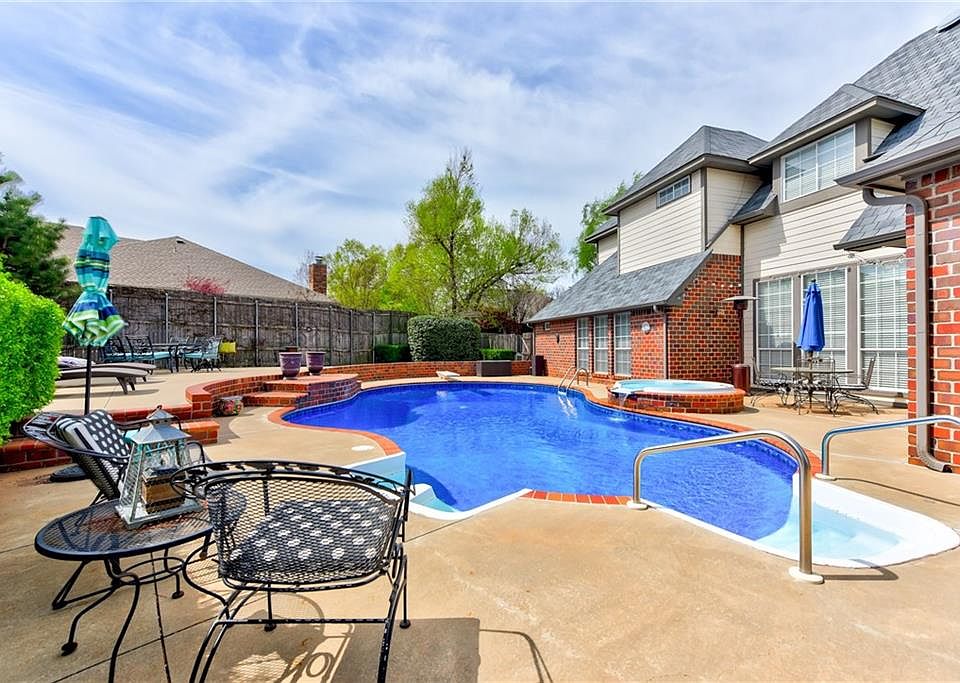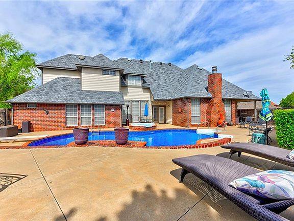 This sophisticated home design beckons to host family events from parties to watching movies on the patio. There's an abundance of room for everyone to have a space to call their own. The heart of this home is the fabulous kitchen including double ovens, center island, breakfast area and gorgeous cabinetry. An expansive bonus room upstairs will also accommodate a variety of family needs, with a built-in wet bar and extra storage. The master suite boasts two closets, window views to the pool out back, & an extra long vanity to spread out and primp! Two living spaces downstairs allow for many to congregate and mingle easily between spaces. Additionally, a handsome office, is adorned with wooden built-in bookshelves and plenty of space to work or study. Upstairs, you can board family or guests in comfort. Outside you can entertain said family & guests in style around a lavish pool and outside grill, perfectly setup to enjoy in privacy. Above ground safe room in the garage. Welcome Home!