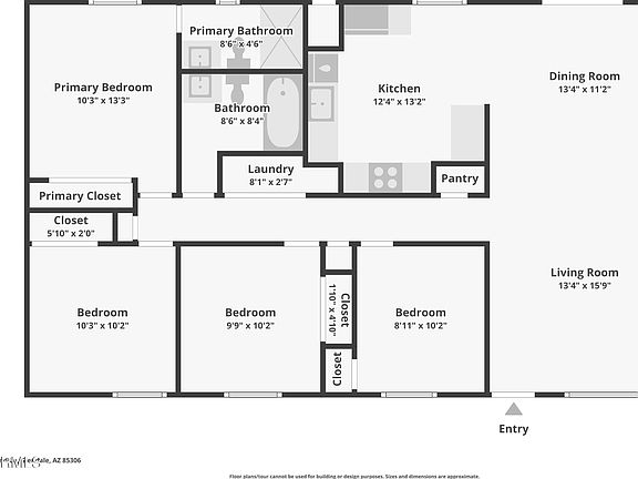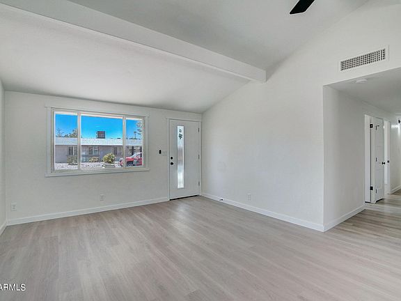 WOW! Remodeled 4 bedroom and 2 bath home in Glendale with no HOA. This home has vaulted ceilings, large yard, storage shed and 2 car carport. New A/C unit just installed. The home has all new paint inside and out, new flooring throughout, new custom tile showers, custom cabinets, quartz counters with custom tile backsplash, fresh gravel front and backyards and so much more. The home has new stainless steel appliances along with an indoor laundry, new doors, baseboards, lights, fans, door hardware and mirrors. This home has a newer A/C and newer roof as well as dual pane windows. The home is move in ready and is a must see.