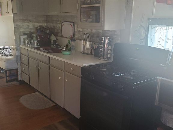 This is a mobile home on a flat, usable third of an acre. This property is close to town, has a large shed, a metal shipping container, and a cinder-block well-house that is being used as another bedroom. The yard is fully fenced and ready for a dog. Plenty of parking is available.