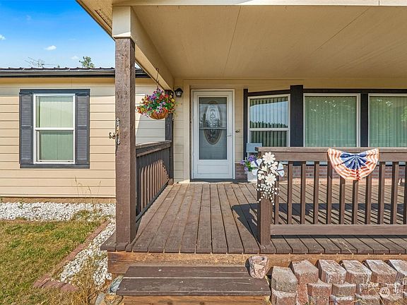 PRICE REDUCED! Pride of ownership shows well in this 3BR/2BA 2006 manufactured home on 6.28 acres. Features include island in kitchen, separate dining room, living room, vaulted ceilings, utility room w/utility sink and backyard access, laminate flooring in kitchen & electric forced-air heating w/heat pump. Outside there's a covered deck in the front of the home and a covered deck in the back with convenient covered breeze way to the separate 2-car garage w/concrete floor plus a separate pergola style covered area for outdoor enjoyment. Home is on its own well & has a 2000-gallon water storage tank. The well pressure tank is in its own separate room at the back of the detached garage. Parking area around home is paved. Come see!