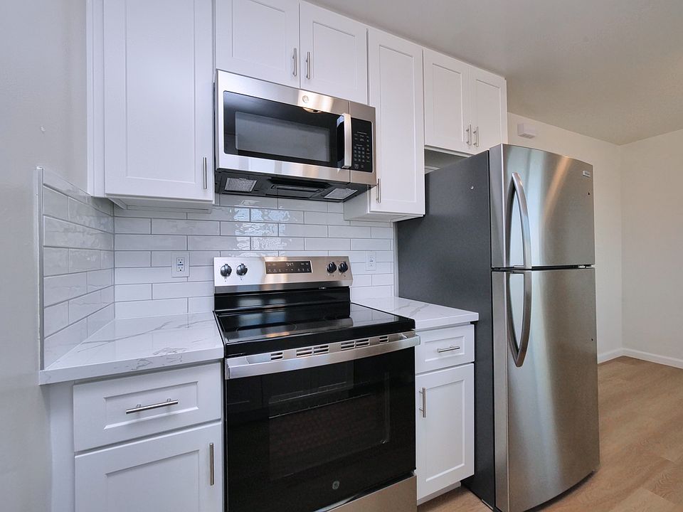 A full renovation of this large 1bdr/1bth top floor unit has been completed. Every part of this great apartment has been updated including full kitchen and baths complete with Quartz counters, designer tile, under mount sinks, stainless steel appliances, LED lighting, and hardwood style floors. This unit futures an eat in kitchen, large living room, large bedrooms, hall lining closet, new large windows, assigned garage parking space. Drivable to BayFair mall, Target, Bart, schools, many restaurants, and Downtown Castro Valley & Downtown San Leandro with easy access to both 580 and 880 freeways. Move in ready and waiting for some lucky person to call it home! KEY FACTS: Top Floor Bedrooms: 1 Beds Bathrooms: 1 Bath Parking: 1 Garage Parking Lease Duration: 12 months Security Deposit: one-month rent Laundry: Shared Utilities: Tenant pays utilities. Property Type: Apartment Professionally managed Pets Ok - no fighting breeds. No Smoking Must have strong credit and verifiable income UNIT DETAILS: Family room Eat in Kitchen Range / Oven Refrigerator Dishwasher Microwave Garbage disposal Stainless steel appliances Electric 5 Burner Range New self-closing cabinets New large windows LED lighting Cable-ready Hardwood style floors BRAND NEW Quartz countertop- better than granite NEARBY: Bart (BayFair) BayFair Mall, Target, + A LOT MORE Costco Wholesale + Walmart Marina Square Shopping Center (Nike Outlet, Starbucks, Restaurants, etc.) Downtown Castro Valley & San Leandro (restaurants, shopping, grocery markets, events, etc.) To Apply Each Adult Must Provide: * Rental application * Credit Report - Strong Credit Needed * Copy of two current paycheck stubs * Current bank statement Please reply to this post via email to set up a time to see this wonderful apartment! Make sure to include details about you and credit score if you know it. Video Tour Available