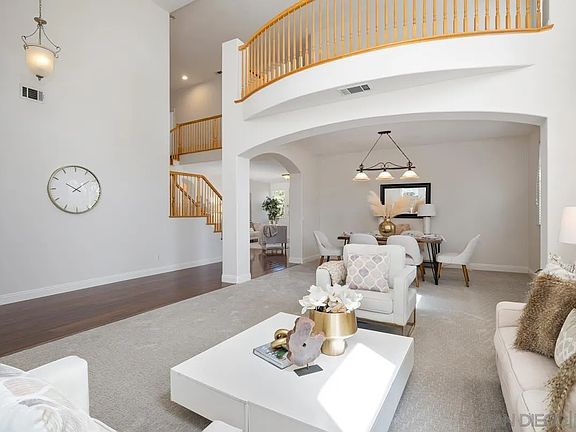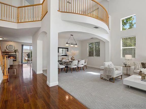 Soaring ceilings welcome you upon entry into this fabulous 5 BR + Loft/ 3 Full BA home w/ 1 BR down at highly desirable Otay Ranch! NEW carpet & freshly painted interior walls! Wood flooring at entry, Family room, & kitchen. Spacious gourmet kitchen w/ breakfast area features: dual ovens, gas cooktop, plentiful cabinetry, & center island. Primary suite w/ walk-in closet & large balcony to enjoy the mountain views! Primary BA includes: dual sinks, vanity area, soaking tub, & separate shower enclosure. Laundry room & office nook! Private yard w/ stamped concrete & lovely grassy area! Fantastic community pool/spa!