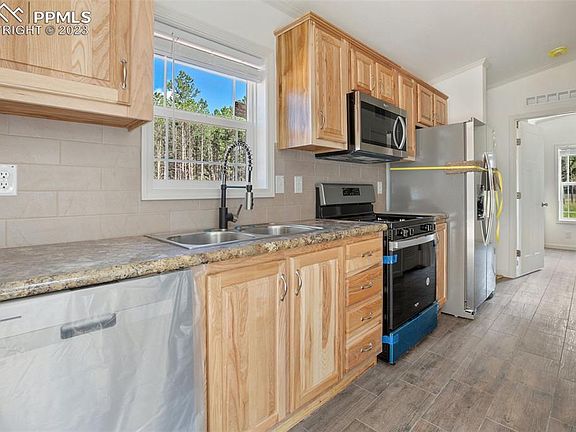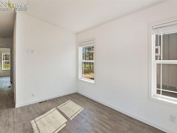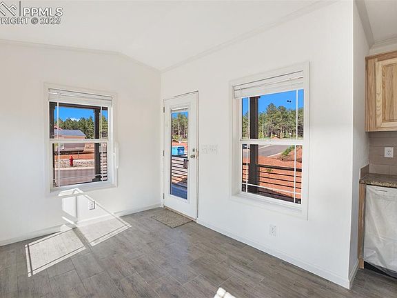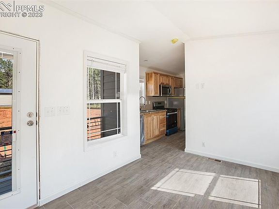 New construction IBC Modular Built home with Leasehold Title Interest in Land. Many upgrade features such as Barn Door sliders on closets, Double Vanity sinks in bath, Large Foot Print Shower with Full Glass Doors, Full size refrigerator with Ice Maker, Upgraded Plumbing Fixtures, Living Space of 500 Square Feet, plus 10' x 12' front composite material deck and two off street parking spaces. Additional 500 Sq Ft, 5' high conditioned storage space under home, concrete floor, outside entrance. Kitchen, Living Room, Master Bedroom and 3/4 bath, Washer and Dryer Incl. Municipal water, sewer, paved streets, snow removal and trash service. The community has 53 home sites located near walking, bicycle path, near 24 hour fitness center, 5 minutes from Downtown Woodland Park. Property Tax is an estimate based on current valuations.