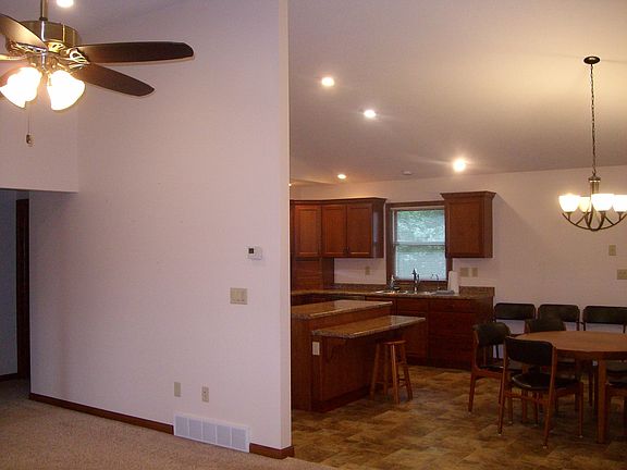 Custom built ranch with zero entry feature. Cathedral ceiling in the great room. Open kitchen/dining with island. Newer stainless steel refrigerator and stainless dishwasher. Stove and built in microwave. Split bedroom floor plan. Double sink and walk in shower in owner's suite. 10x12 three season room. Washer/dryer are included. Finished garage with hot/cold water. Deep crawl space.