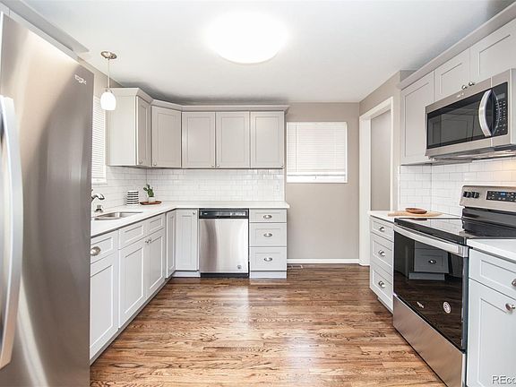 Updated and Gorgeous home in Sherrelwood Estates! Newly Repainted exterior and long driveway greet you upon entrance. Step inside and find the beautifully refinished hardwood floors, open living room with sightlines to the kitchen or dining room. WOW! Check out this kitchen! All new *gorgeous* cabinets, new quartz countertops, new stainless steel appliances, and a beautiful new subway tile backsplash -just remodeled! The dining room provides access to the sunroom. The sunroom is bright and sunny -a perfect spot to set up a dining space or a family room. Look out onto the newly refinished grass, and garden area! The main floor also features 2 bedrooms and an updated bathroom. The basement is finished and features a large laundry room, non-conforming 3rd bedroom (no egress window), and a large family room. That's not all! The massive oversized garage is a major bonus! 896 sqft with high ceilings for tons of storage/parking/workshop options! The backyard also features a large shed, garden bed, side RV gate, etc!! A beautiful home, with gorgeous/neutral updates all ready today! Don't miss out on this one! Check out our 3D Tour, as well as our Virtual Video walkthrough! You can view it from the comfort of your home now! Welcome, Home!