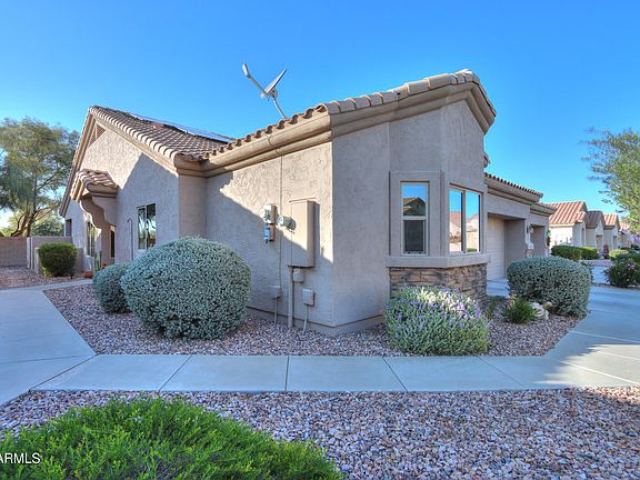 Beautifully furnished & turnkey-ready 2 bed, 2 bath plus den home in the desirable 55+ Ironwood Village Community is located in the heart of Casa Grande! This nicely updated, popular 4 model residence features fully owned solar with newly added, additional panels, which has covered all electric bills for the current owner! You will love the inviting eat-in kitchen boasting granite counters, stylish backsplash, stainless steel appliances, reverse osmosis system, recessed & pendant lighting & a bright dining area with charming bay window. Enjoy tile flooring throughout the main areas, with gorgeous vinyl plank flooring in the primary suite & den. The spacious primary suite offers a bay window, king-size bed, huge walk-in closet & an en-suite bath with dual-sink vanity & walk-in shower. The guest suite includes plush carpeting, another bay window & large wall-length closet. Additional upgrades include ceiling fans throughout, utility screens, recently upgraded gas water heater & new Samsung washer & dryer with utility sink in the garage. The fully enclosed back patio provides a perfect spot for relaxing or entertaining. Ironwood Village offers resort-style amenities including a stunning clubhouse, community pool, outdoor fireplace, billiards room, library, game room, horseshoes & so much more. Close to shopping, dining & everything Casa Grande has to offerthis meticulously maintained home is truly move-in ready!
