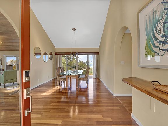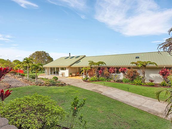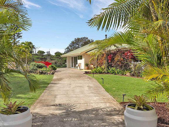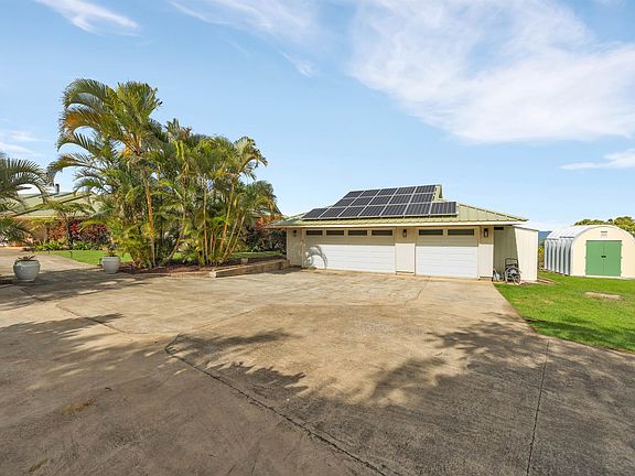 Nestled on a terraced 2-acre parcel, this private Upcountry retreat is a lush sanctuary featuring a mature drip-irrigated mango orchard, citrus trees, dragon fruit, bananas and avocado and a beautifully curated kitchen garden adorned with natives and herbs. Thoughtfully designed for seamless single-level living, the home embraces the ideal Lower Kula climate with multiple inviting outdoor spaces for year-round enjoyment. The remodeled kitchen (2023) boasts custom cabinetry, honed granite countertops, and top-of-the-line Sub-Zero refrigerator/freezer with induction range, perfect for culinary enthusiasts. A versatile 4th bedroom includes a Murphy bed, offering flexible living options. Sustainability meets functionality with stucco siding, a standing seam roof, and a net-metered photovoltaic system, maximizing energy efficiency and fire safety. The oversized 3-car detached garage provides ample space for vehicles and projects, complemented by additional storage sheds. Securely fenced and gated, this flag lot is set back off Naalae Road, ensuring privacy while being surrounded by the beauty of Upcountry Maui. A truly unique property!