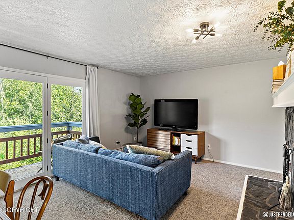 Nice condo that backs up to a park. Enjoy your morning coffee on the deck overlooking the park, pond, wildlife & Chugach Mountains. Close to the base, top floor unit, hardwood cabinets, spacious laundry room with washer and dryer, pets OK, wood burning fireplace, 2 good-sized bedrooms. Primary suite includes an additional vanity with sink. Covered carport has a plug-in for your car in winter.Fresh paint throughout, new hardware on all the doors and cupboards, and updated light fixtures as well. You can also hear the stream from the windows and it's very relaxing.