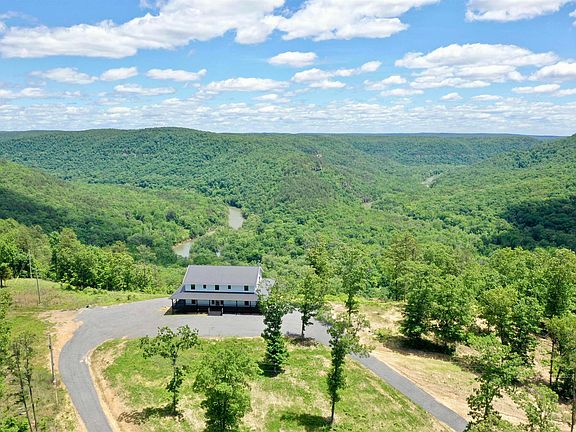 OZARK MOUNTAIN PARADISE with a breathtaking view of the Little Red River! This 4 bedroom, 3 bathroom home with a wrap around porch was built in 2021 & sits on 111.75 private acres with the most remarkable view! The home features an open floor plan with large windows in the main areas, a native stone woodburning fireplace, custom kitchen cabinets, stainless appliances, large island, and lots of storage/pantry space! The master suite has a spacious bedroom leading out onto the porch, full bathroom offering his/her sinks, walk in tile shower, claw foot soaking tub, and large walk in closet with custom built in shelving! Upstairs is 2 bedrooms, full bathroom, and a bonus room that would make a great office, craft room, or 5th bedroom! The home is very private but easily accessible! The property offers excellent hunting opportunities with NO RESTRICTIONS & FIBER INTERNET! This property would make an excellent getaway, Airbnb, or forever home!